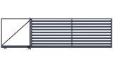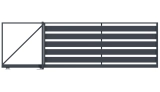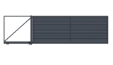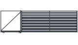 Profile 160x20 mm und 80x20 mm horizontal angeordnet. Profile mit einer Breite von 16 cm werden im unteren Teil der Füllung verwendet, Profile mit einer Breite von 8 cm im oberen Teil. Die Abstände zwischen den Profilen werden individuell im Bereich von 20 bis 80 mm gewählt.