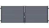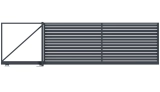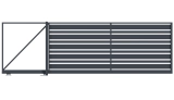 Profile 200x20 mm horizontal angeordnet.Die Abstände zwischen den Profilen werden individuell im Bereich von 20 bis 80 mm gewählt.