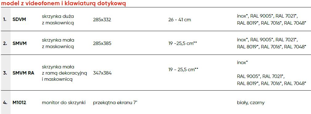 Skrzynki z videodomofonem i klawiatura dotykową