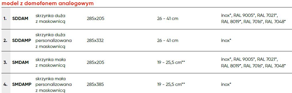 Skrzynka na listy z domofonem analogowym