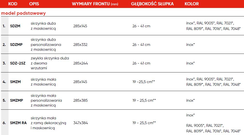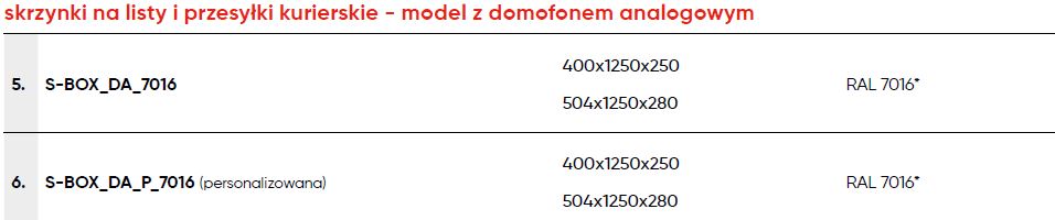 Skrzynki na listy i przesyłki kurierskie - model podstawowy
