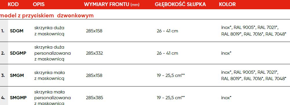 Skrzynki na listy z przyciskiem dzwonkowym