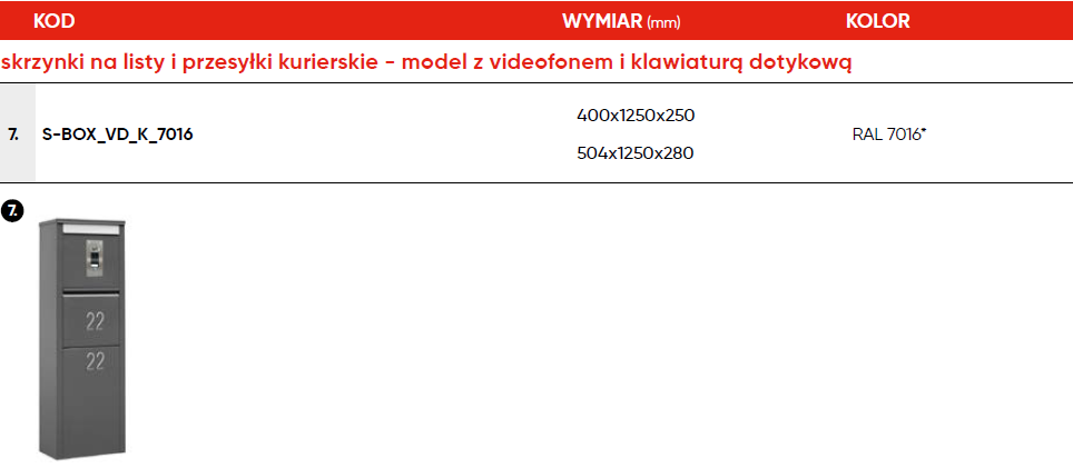 Skrzynka na listy i przesyłki kurierskie - model z videodomofonem i klawiaturą dotykową