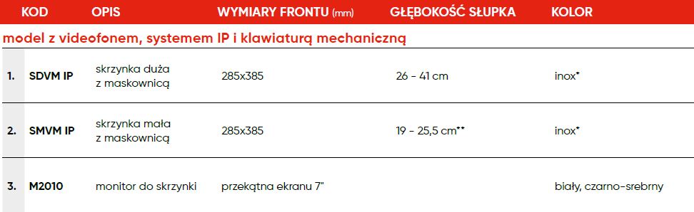 Skrzynki z videodomofonem, systemem IP i klawiaturą mechaniczną