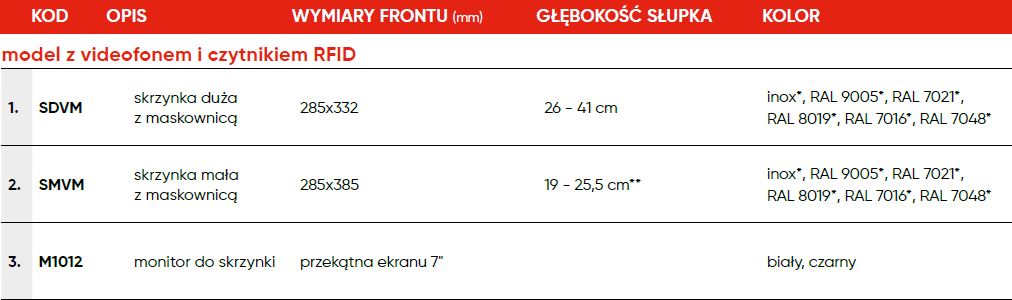 Skrzynki z videodomofonem i czytnikiem RFID